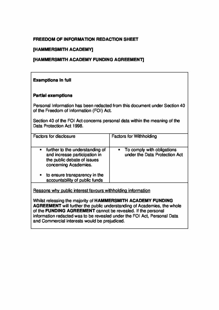 hammersmith academy funding agreement