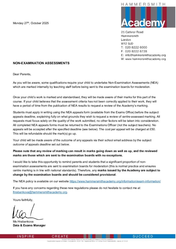 Non-Examined Assessment Letter – November 2025