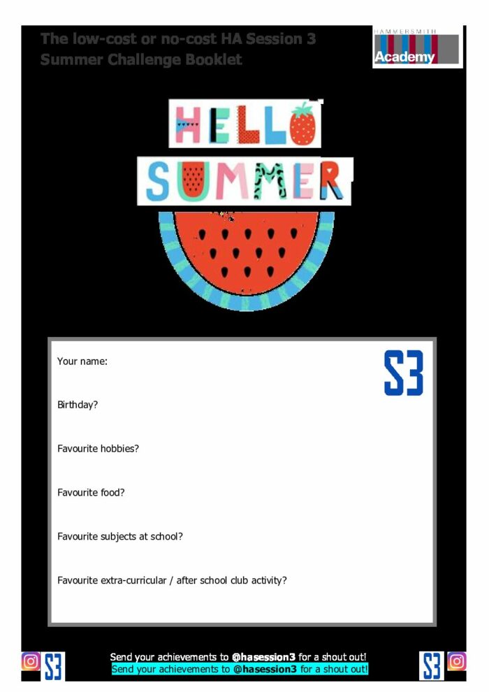 HA Session 3 Summer Activity Booklet