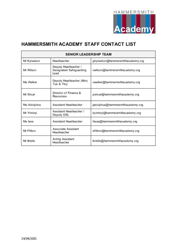 HA Staff Contact List – May 2025