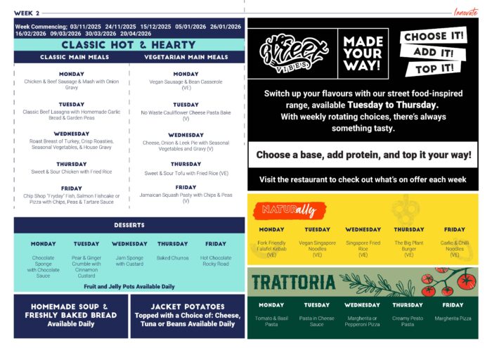 Food is prepared fresh each day onsite in our kitchen and each term features a new 3 week rotational menus. Please see the menus for what is on offer as well as any allergen information.