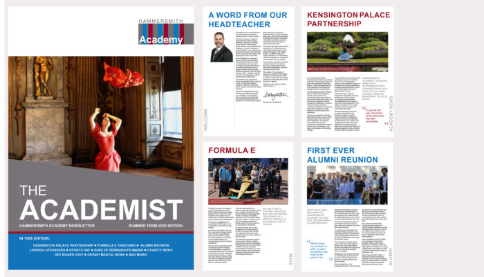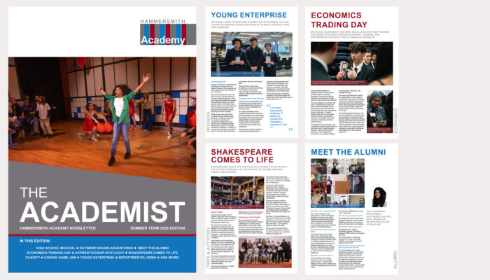 The Academist is Hammersmith Academy’s termly newsletter, containing articles and stories from the full spectrum of Academy life. There are contributions from both students and staff, and covering academic and extra-curricular events.